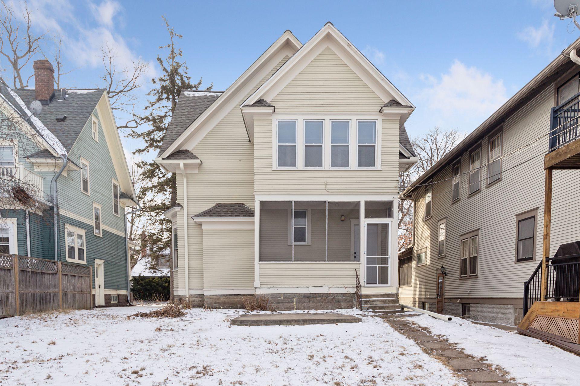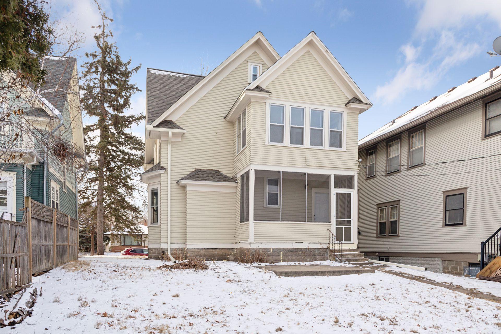 Welcome to this updated 2.5-story home in the desirable Macalester-Groveland neighborhood of Saint Paul! This charming residence features a new roof and gutters (January 2025), updated lighting, fresh paint, and keyless entry doors. Inside, enjoy original hardwood floors, built-in buffets, ornate windows, and rich wood trim. The top-level bonus room, filled with light, is perfect for a study or guest suite, while the heated sleeping porch offers a cozy retreat or office. The exterior includes a new garage door and fresh screens on the porches. The spacious unfinished basement, with bright lighting, is ideal for laundry, storage, or hobbies. Don't miss this opportunity to own a beautifully updated home in a prime location!