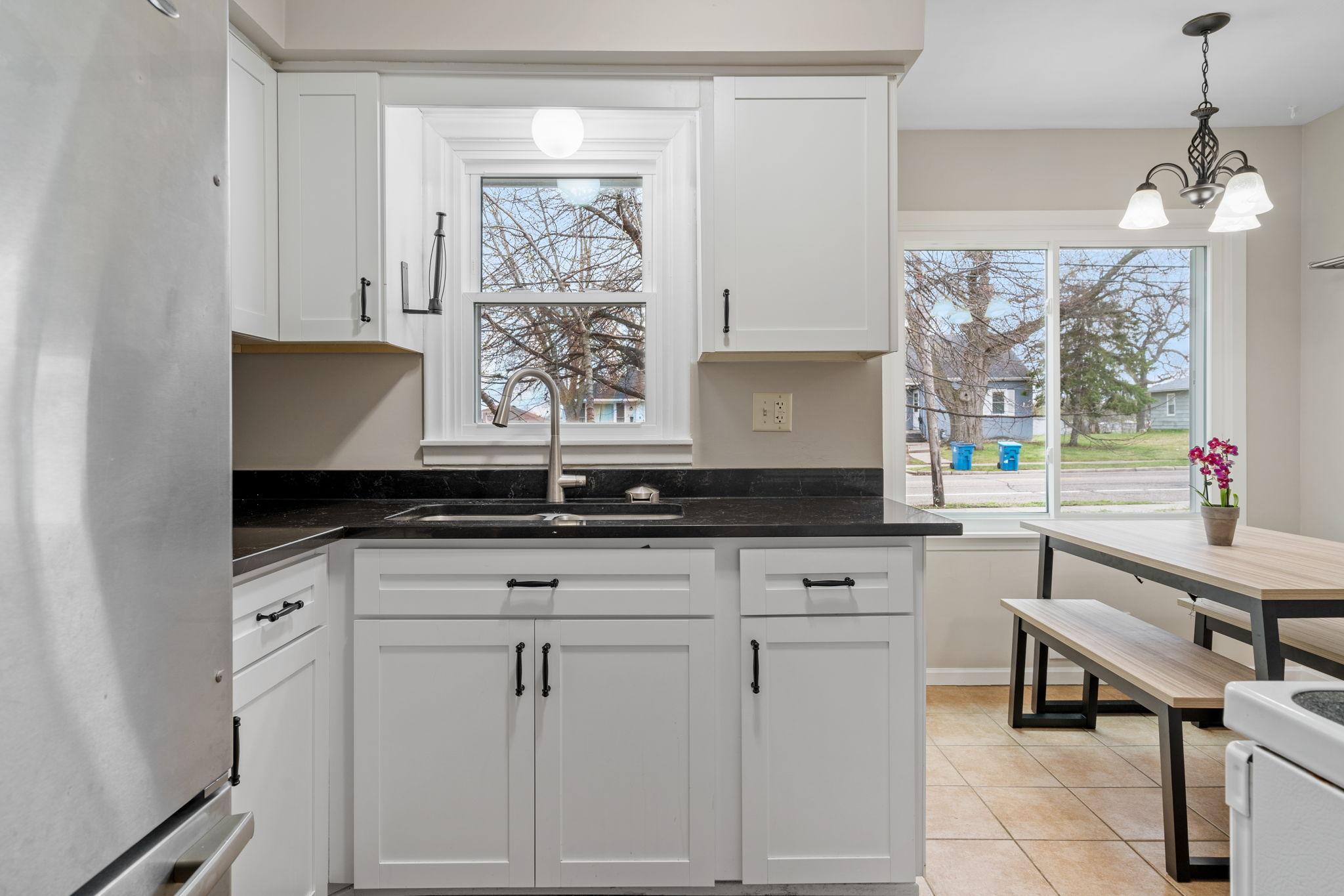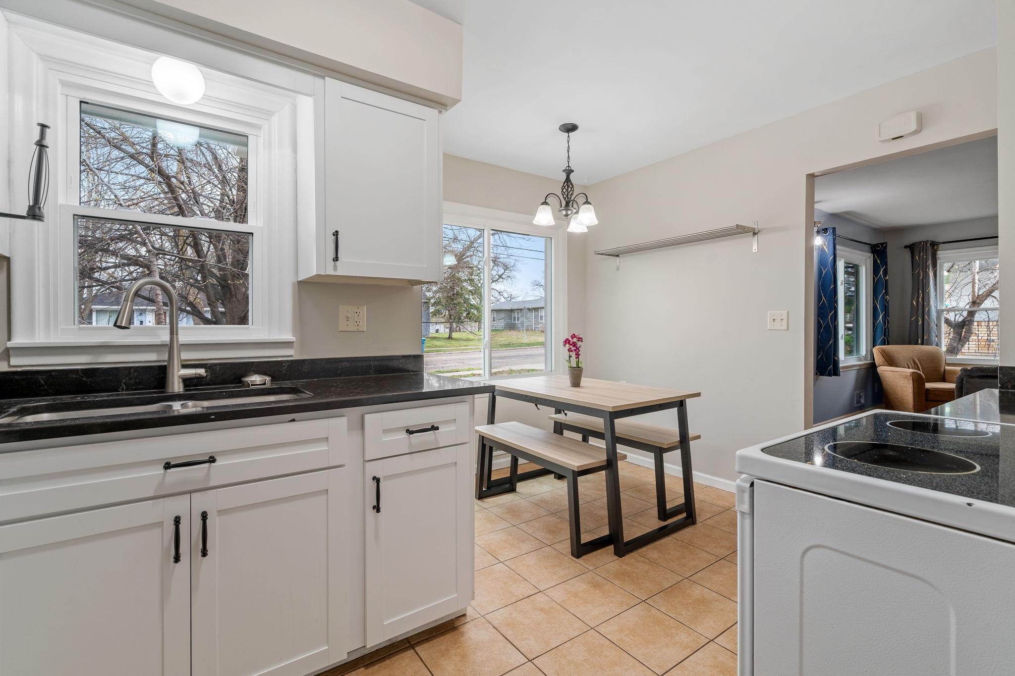 Welcome to 305 Butler Ave E, a beautifully refreshed home with quality upgrades and scenic views of Lily Lake. This charming home boasts a new roof, new windows, and a remodeled kitchen by Minnesota Rusco, featuring enameled white cabinetry and elegant black countertops. Upon entry, you'll be greeted by a spacious living room, ideal for relaxing or entertaining. The main level offers 2 bedrooms and a full bathroom, providing comfortable living space. Additionally, the unfinished lower level presents an exciting opportunity with a legal egress window, ready to be transformed into a 3rd confirming bedroom or a versatile space to suit your needs. Situated in close proximity to Thompson Park, this home offers convenient access to all the local amenities!