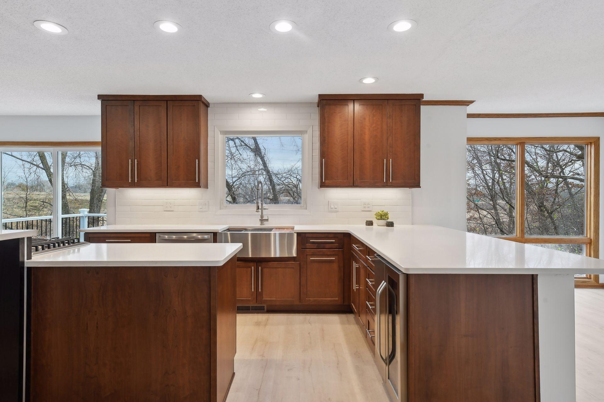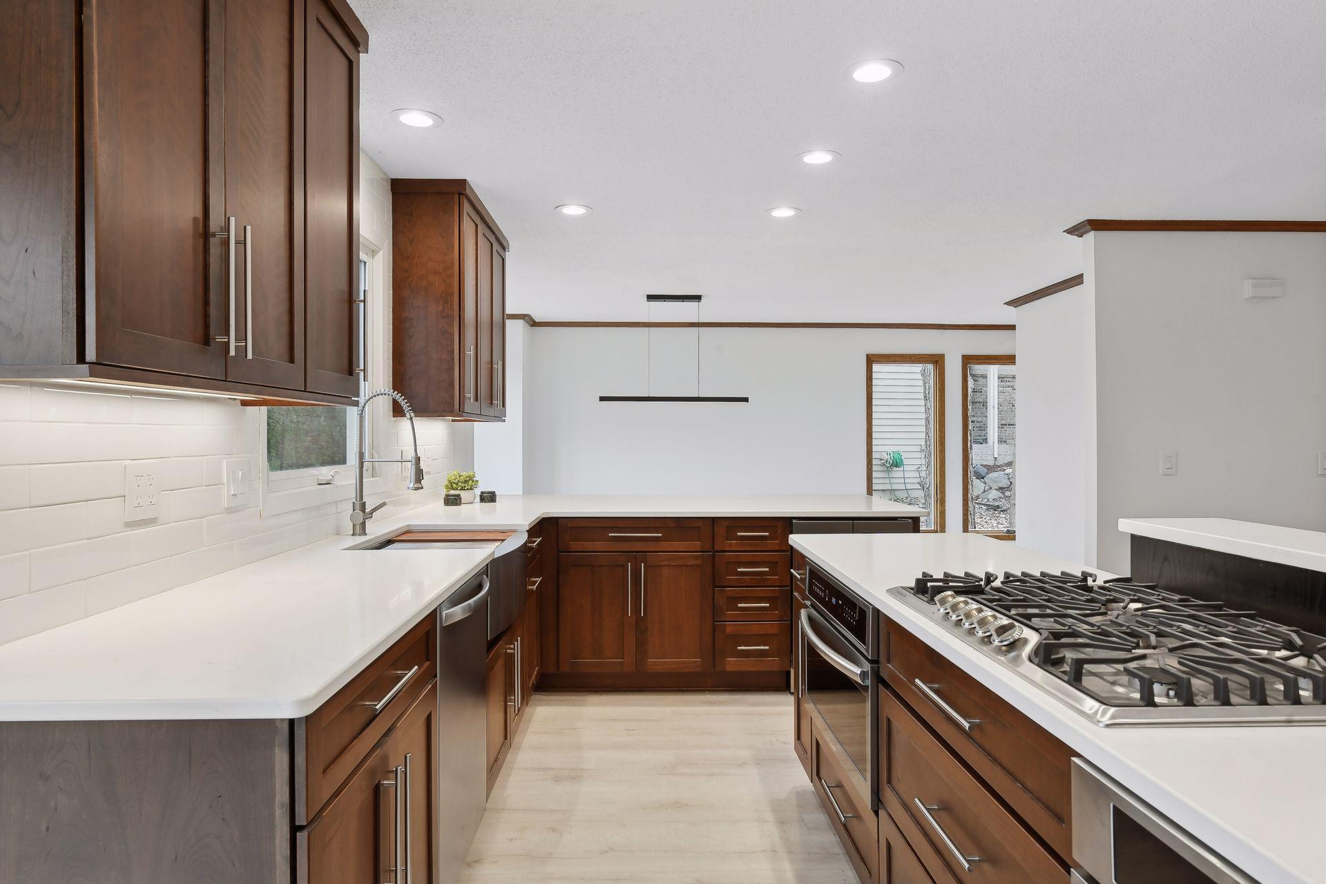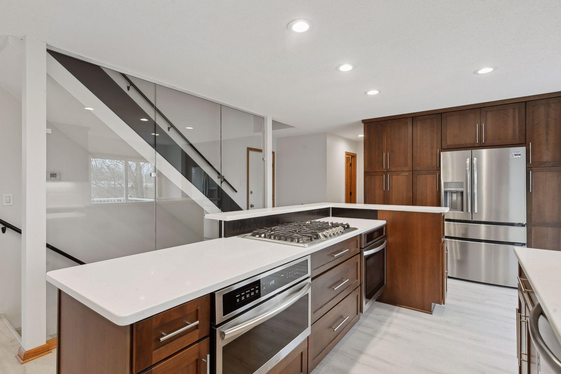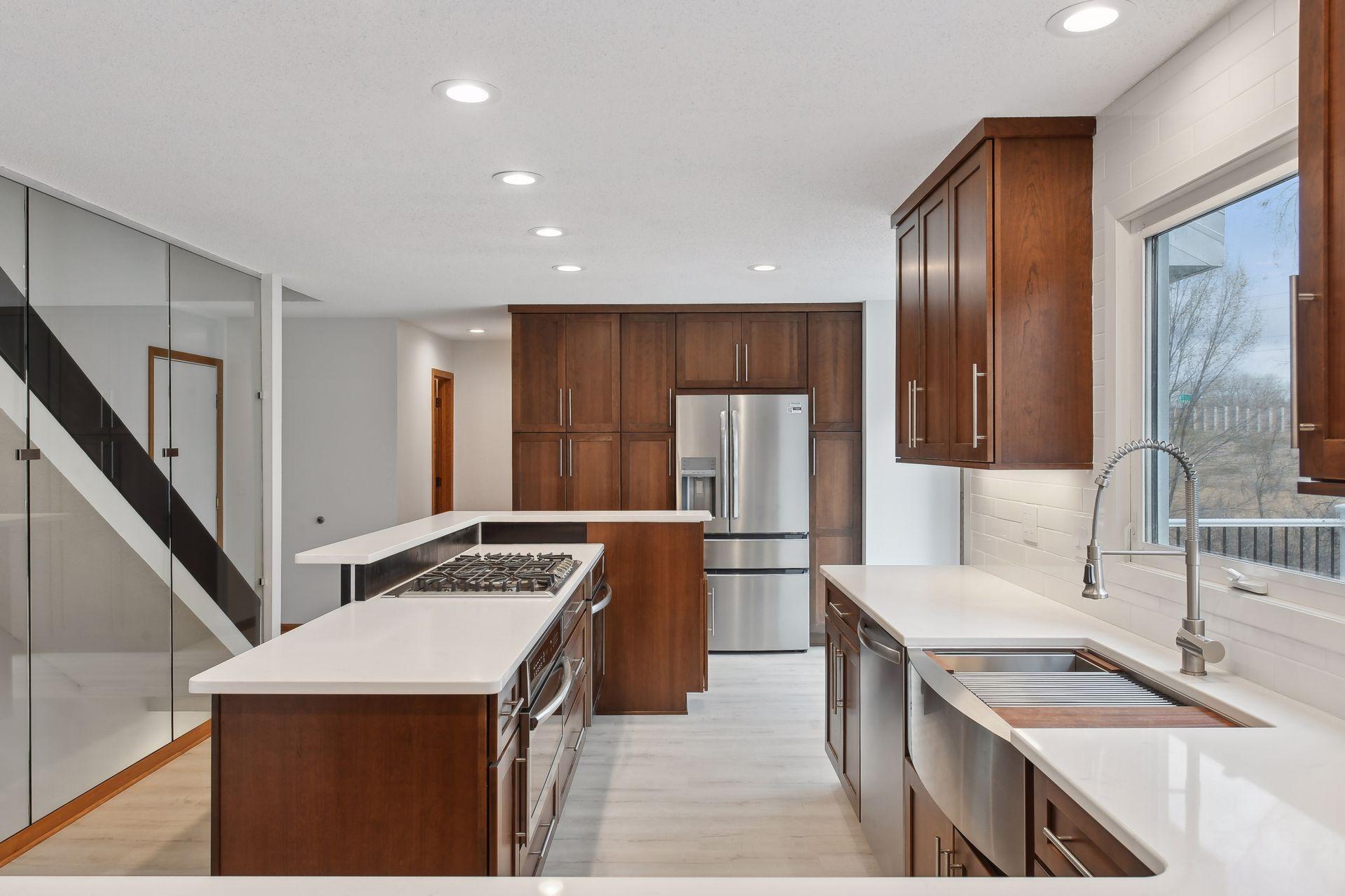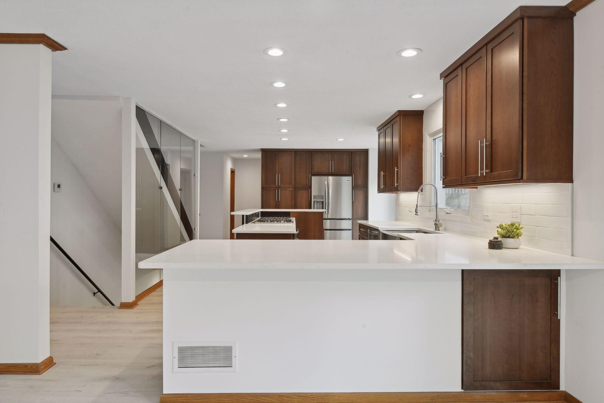 Welcome to this beautifully updated twinhome in Eden Prairie, combining modern style and convenience. This 3-bed, 3.5-bath home boasts exceptional finishes and updates. The 2-story entrance and great room are filled with natural light, featuring sleek flooring, fresh paint, and modern fixtures. The kitchen shines with premium appliances, quartz countertops, and ample cabinetry, perfect for entertaining. The spacious primary suite includes an updated en-suite bath and custom closet, while additional bedrooms and a loft offer flexibility. Bathrooms showcase contemporary design. The walkout lower level includes a family room with a stylish wet bar. Exterior updates include new siding and a maintenance-free deck, ideal for gatherings. An attached 2-car garage adds convenience, and the low-maintenance property lets you enjoy your home. Close to shopping, dining, parks, and schools, with no HOA fees, this home offers incredible accessibility and value!