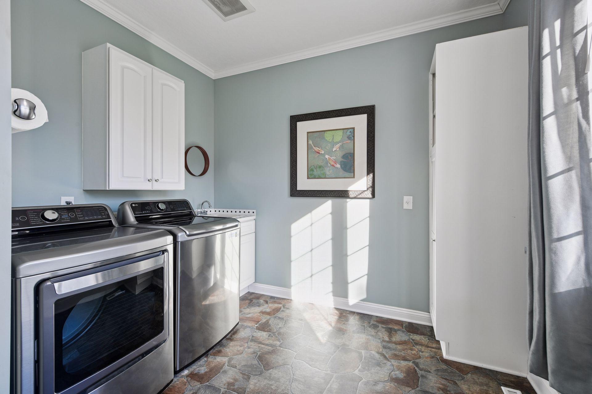 The remodeled kitchen is the heart of the home, showcasing quartz countertops, a stunning herringbone backsplash, high-end stainless-steel appliances, and an iSpring 7-Stage Reverse Osmosis Water Filtration System with Boost Pump and self-refilling 4-gallon tank. A refreshed mudroom and pantry area add both style and organization for everyday ease.