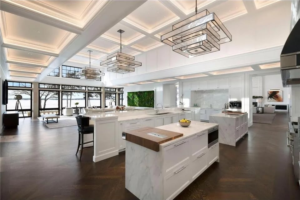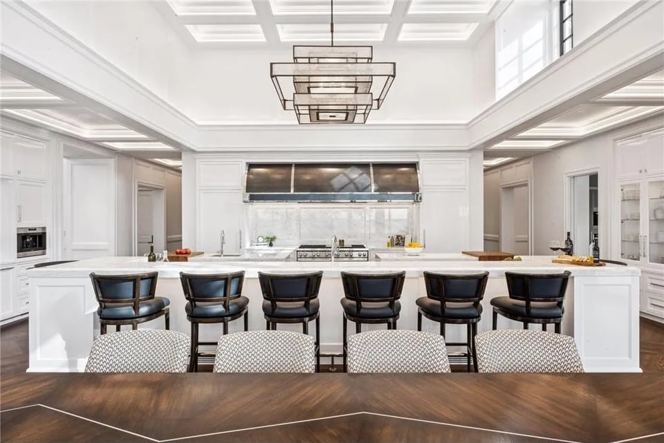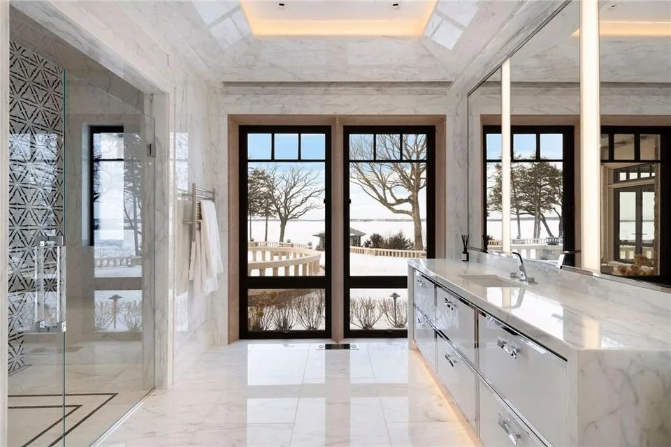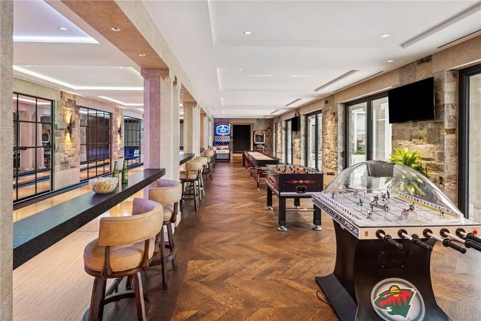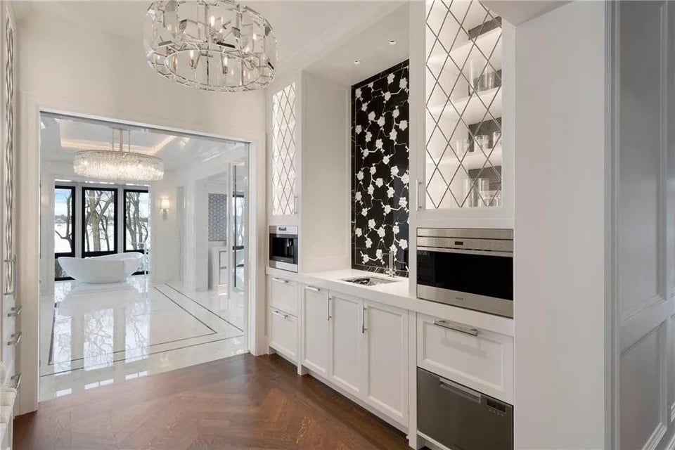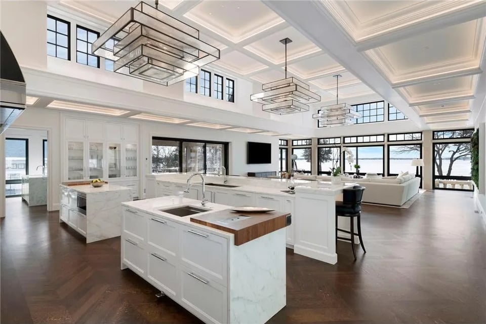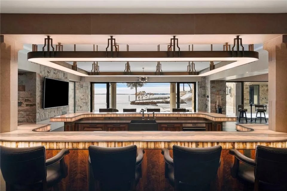 The main residence, in close relationship with two guest houses, a pool house, lake porch, and boathouse, form a cohesive lakeside retreat designed for grand entertaining and potential for multi-generational living. Every structure reflects the collective vision of an acclaimed team: John Kraemer & Sons, TEA2 Architects, PKA Architecture, MartinPatrick 3, and Topo Landscape Architecture. The result is an uncompromising expression of craftsmanship and design integrity. Imported stone, custom metalwork, and precision millwork converge with thoughtful modern comfort.