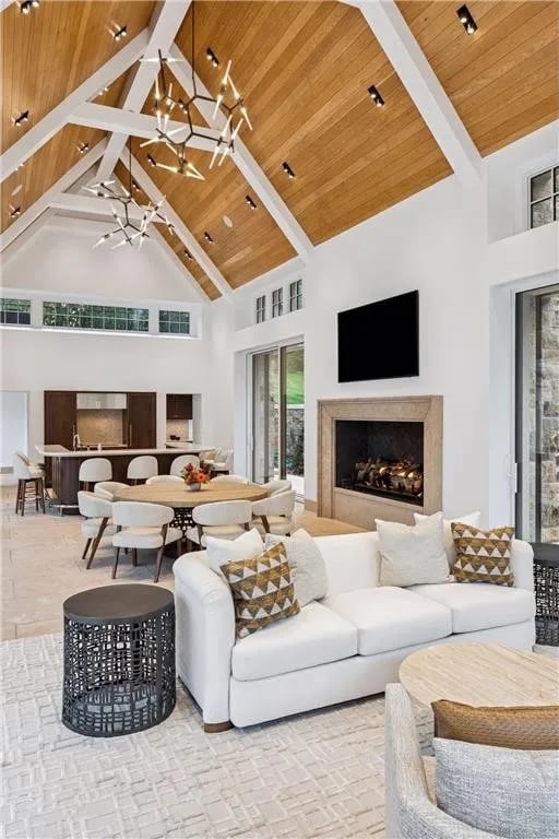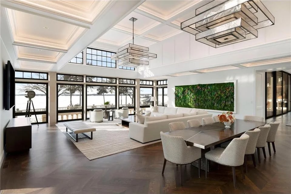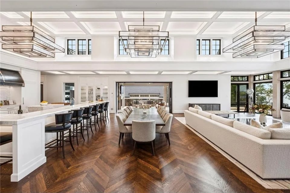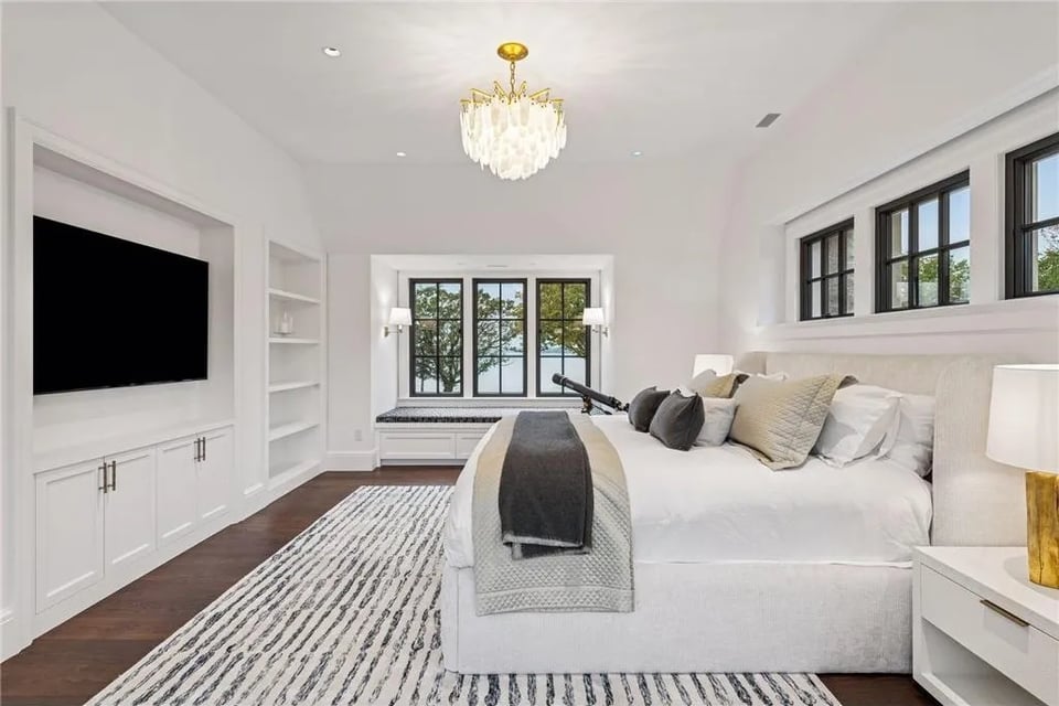 Offered fully furnished and curated to the last detail, the estate balances artistry and livability. From its stocked chef’s kitchen to expansive lakeside terraces overlooking 650 feet of shoreline along the lower-lake basin, every element reflects a singular commitment to excellence.